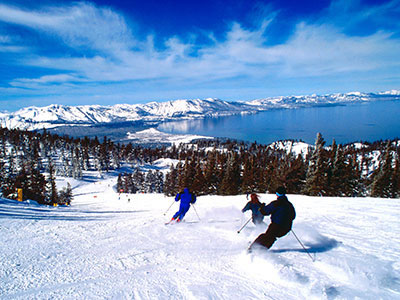 At lake level, annual snowfall averages 125 inches. At alpine skiing elevations, the snowfall averages 300 to 500 inches each year. |
